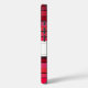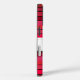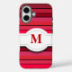 iPhone 16 Gehäuse mit anpassbarer Monogramm-Vorlage und Hintergrund mit roten Streifen; Rot-Weiß-Retro-Design