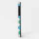 Ein lebendiges Gehäuse zum Schutz Ihres iPhone 5, mit einem abstrakten "Blue Moons"-Muster in heller Blues und Neon Green auf weißem Hintergrund; von Judy Adamson aus einer handbemalten Papierkollektion.