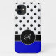 Tupfenmonogramm iPhone 5 der Männer oder Damen-Fall mit Schwarzweiss-Hintergrund und blauer Akzentfarbe, die Sie besonders anfertigen können. Leichter Bau passt sich an Ihr iPhone in der Art an und hat Öffnungen für alle Verbindungen und Knöpfe.