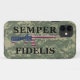 iPhone 5 Fall mit einem M16 getan in einer amerikanischen Flagge mit den Wörtern "Semper Fidelis"