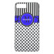 Dieses personalisierte Case-Mate iPhone 7 Plus Gehäuse hat einen lustigen Polka-Punkt, gestreiftes Hintergrundmuster mit einem kobaltblauen und schwarzen Giraffenband und Kreis, um Ihren Namen, Initialen, Monogramm oder anderen Text hinzuzufügen. Dieser moderne und trendige neue Fall macht die angesagte junge Fashionista zu einem schicken Statement! Wenn Sie Hilfe benötigen, senden Sie eine E-Mail an niteowlstudio@gmail.com.