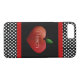 Lehrer's iPhone 7 Fall in schwarz getan, mit schwarz-weiß polka Punkte, auf der oberen und die untere und die Kante mit einem roten Band. Niedliche Grafik eines großen, roten Herzs geformten Apfels schmückt die Mitte des Gehäuses. Text in Weiß, liest iTeach. Personalisieren Sie den Text, um alles zu lesen, was Sie gewollt haben.