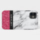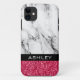 Moderner weißer und schwarzer Marmorstein und roter Glitzer. Benutzerdefiniertes Monogramm auf schwarzem Streifen