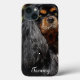 iphone Abdeckung, cavalier spaniel, König Charles Cavalier Spaniel. Cavalier Spaniels sind die süßesten Hunde der Welt! Hier ist ein wunderschöner schwarz-bräunlich Cavalier bereit, um Ihr Telefon frei von Kratzern behalten. Das iPhone 11 12 13 Gehäuse mit Foto und NamePersonalize mit einem Namen. Wählen Sie das richtige Gehäuse für Ihr iPhone 11, 12 oder 13. Cavalier Spaniel Art von Carol Cross