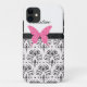 iPhone 5 Fall mit hübschem rosa Schmetterlings- und Damastmuster mit weißer Akzentfarbe, die Sie ändern können. Fertigen Sie das Monogramm mit allem möglichem Namen oder Initialen besonders an. Schützt Ihren Handy in der Art und hat Öffnungen für alle Ihre Häfen und Knöpfe. Entworfen für Damen oder Mädchen und jedermann, das Schmetterlingssachen sammelt.