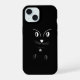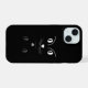 Iphone-Hülle mit Katzenkopf und weißem Spiegelbild auf schwarzem Boden. Nüchternes und stilisiertes Design.