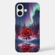 Let this dramatic icy scene be your daily dose of unique romance. Under the flowing Northern Lights, a vibrant red rose stands proudly and beautifully on the frozen lake, reflecting a promise of love and eternity. More than just a design, it symbolizes that love and hope can still bloom even in the coldest and darkest moments. Offer this otherworldly beauty to that special person who truly understands the profound romance of life.