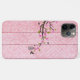 Japanisch Rosa Sakura iPhone Gehäuse mit Blüten und blauem Vogel