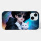Das ist ein iPhone-Fall. Es zeigt ein Mädchen, das eine niedliche Katze hält.