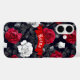 Rote, schwarze und weiße Rosen bedecken dieses schöne Goth iPhone Gehäuse. Personalisieren Sie mit Ihrem Namen in weißem schwarzem Schriftart in einem roten Band.