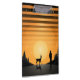"Mitternacht Rendezvous: Mensch und Stag unter dem Goldenen Mond" präsentiert ein minimalistisches und dennoch elegantes Design, das eine friedliche Nachtszene darstellt. Ein Mann und Junggeselle, silhouettiert gegen einen Sternenhimmel, blicken auf einen strahlenden Vollmond, der die Szene in einem goldenen Licht badet. Dieses Kunstwerk mit seiner Kontur aus Schwarz und Gold schafft ein ruhiges und majestätisches Ambiente und lädt zur Betrachtung der großen Schönheit des Universums ein. Die Einfachheit des Designs, die sich auf die Konturen der Figuren und Himmelselemente konzentriert, verleiht dem Kunstwerk Eleganz und Geheimnis.