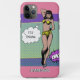 HAMbyWhiteGlove aka HAMbyWG - Comic Buch Look Gelb Gehäuse mit lila, blau und grün und OMG Text-Blase, hat eine rockabilly Babe mit einem gelben Bikini, plus Platz für Ihren Text oder Namen! Wenn Sie es vorziehen, können Sie das Textfeld leeren und ohne Namen verwenden. Um die Hintergrundfarbe von gelb zu ändern, wählen Sie die Option Anpassen. Rosa
