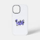 This image displays an iPhone in a clear case, featuring a Halloween-themed design with the word "BOO!" in a dripping purple font, adorned with witch hats, skulls, and ghosts.