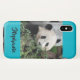 Dieses harte Gehäuse für das iPhone X ist Teil unserer Kollektion "Riesenpandas", die passende Küchenartikel, andere Geschenke, Grußkarten und Packpapier beinhaltet. Was für eine wunderbare Ergänzung für Ihr neues iPhone. Wunderschönes Geschenk für Panda-Liebhaber. Dieser Stil weist einen blauen Hintergrund auf. Jumbo lustige Typografie. Original Foto von Marcia Socolik, aufgenommen in Chengdu, China. Alle Rechte vorbehalten © 2017 Alan & Marcia Socolik.