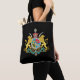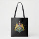 Tote Bag: Patriotisch & Historisch = Kaiserliches Wappen des Iran unter der Pahlavi-Dynastie, verwendet von 1925 bis 1979. Der Schild besteht aus dem Löwen und dem Sonnensymbol im ersten Viertel, im zweiten Viertel dem Faravahar, der den Zoroastrismus repräsentiert, im dritten Viertel der gekrümmten Klinge eines Imam-Ali-Schwertes "Zulfiqar", das den schiitischen Islam repräsentiert, und dem Simurgh im vierten Viertel. Insgesamt befindet sich in der Mitte ein Kreis, der den Damavand mit einer aufgehenden Sonne darstellt, das Symbol der Pahlavi-Dynastie. Der Schild ist mit der Pahlavi-Krone gekrönt und von der Kette des Ordens von Pahlavi umgeben. Zwei aufgerichtete Löwen mit Säbeln stützen das Wappen auf beiden Seiten. Unter dem gesamten Emblem befindet sich der Wahlspruch: "Mara dad farmud va Khod