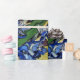 Ire von Vincent van Gogh. Vintages Ölgemälde, beeindruckende blaue Iris-Blume, grüne Blätter in brauner Vase auf gelbem Hintergrund Weihnachtsgeschenkpapier.