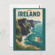 Ireland retro vector travel design. From the lively streets of Dublin and Galway to the breathtaking Cliffs of Moher and Wild Atlantic Way, Ireland offers travelers a perfect blend of history, charm, and natural beauty.