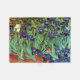 Ire wurde 1889 gemalt, während Vincent van Gogh im letzten Jahr vor seinem Tod im Jahr 1890 im Asyl von Saint Paul-de-Mausole in Saint-Rémy-de-Provence, Frankreich, lebte.  Atemberaubende Darstellung violetter Töne mit lebhaften grünen Blätter, reichhaltigem Terrakotta-Boden, vor einem Hintergrund hellorangefarbener Muränen und einem Single weißer Iris.