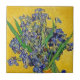 Irische in Vase vor gelbem Hintergrund, eines der berühmtesten Blumenbilder von Vincent van Gogh.