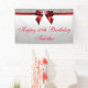 Hübsche Rote und versilbern jede personalisierte Geburtstagsfahne des Alters mit einem flachen grafischen Bild der silbernen Sequins und roten Bogen mit rotem Text.