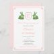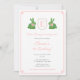 Dieses zeitlose Baby Dusche Einladungs-Design bietet Boxwood Topiary in Form eines einfachen Hasen mit Floppy-Rosa Bogen. Zwischen diesen Kaninchen ist ein rosa und apfelgrünes Wappen mit Platz für einen Single Buchstaben Monogramm. Wasserfarbenelemente wurden von mir auf 100% Baumwollpapier gemalt und in digitaler Form gescannt. Die Form des Wappen wird von einem anderen Künstler bestimmt.