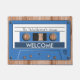 Eine Spaßtürmatte für Musikfreunde eines bestimmten Alters! Eine Grafik einer Retro Musik-Kassette mit kundengerechtem "Aufkleber". Wählen Sie "besonders anfertigen ihn" und auswählen eine neue Hintergrundfarbe, um die Farbe der Kassette magisch zu ändern. Unterhalten Sie und begrüßen Sie Besucher zu Ihrem Zuhause auf einmal mit diesem lustigen Vintagen Artentwurf.