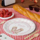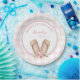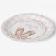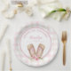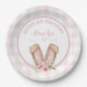 Einige Bunny verwandelt ein Geburtstagsmädchen in Party-Papier-Teller. Liebliche Typografie in Pastellrosa. Adorable Aquarellblütenohren mit rosa Wildblumen auf pastellrosa Gingham-Hintergrund. Persönlich gestalten Sie Ihren besonderen Geburtstagsnamen.