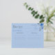 Elegantes Kalligrafie Script Etwas Blue Brautparty Themed Rezept Card mit Aquarell-Blume. Auf der anderen Seite gibt es eine Gläser Champagner mit Bouquet.