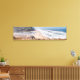 Eine erfrischende Meeresstrand-Szene mit Sand, Surfen, goldenen Gräsern und einer Brücke. Die Phrase von "irgendwo am Strand" geschrieben in einem leicht durchdringlichen Skript unten in weiß. Erstellt auf einer gestreckten Leinwand. Passen Sie diese Meeresstrand-Szene an oder kaufen Sie wie gezeigt. Die Größe ist individuell 39" L x 9" W.