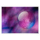 Vor einem Hintergrund königsblauer und faszinierender, heißrosa Wolken wie entfernter Galaxien ist ein Single glatter Glasorb mit einem wirbelnden Fraktal, das innen aufgehängt ist.