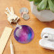 Vor einem Hintergrund königsblauer und faszinierender, heißrosa Wolken wie entfernter Galaxien ist ein Single glatter Glasorb mit einem wirbelnden Fraktal, das innen aufgehängt ist.