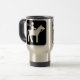 Keramik Tasse. Pictograph eines schwarz-weißen Reitfahrers mit den Worten "iRide".