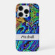 This fun iphone cover is a striking iridescent abalone sea shell pattern in shades of purple, dark and light blue, green, yellow and orange. Personalize with your name in the template provided. This phone case is unique, artsy, funky and definitely fun to own!