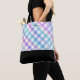 Pink-blaues Gingham-Muster mit Monogram Tote Bag