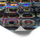 Genießen Sie dieses digitale Musterdesign mit abstrakten Blasen und einer strahlenden Farbpalette.