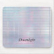 Ein digitales Muster mit einem subtilen schillernden Gitter über einem weichen pastellfarbenen Hintergrund, das eine futuristische Ästhetik hervorruft.