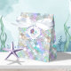 Mit dieser wunderschönen Geburtstagsgeschenkbox können Sie bei Ihrem Sommerfest Wellen machen! Dieses Design, das in einem Aquarellmuster mit Meerjungfrau-Maßstab in lila, aquamarinen und Meeresgrün gehalten ist, fügt jedem Geschenk einen magischen Unterwasserschimmer hinzu. Die Vorderseite ist mit einem individuellen Label in Form einer Muschel versehen, das sich perfekt an den Namen und die Geburtstagsdetails Ihres Kindes anpasst. Ideal für Geburtstagsgeschenke, Gastgeschenke oder passende thematische Vorräte, dieses Muster lässt die Ozeanfantasie zum Leben erwecken - ein Spritzer nach dem anderen! Suchen Sie die ID144, um die Produkte in diesem Design-Set zu sehen.
