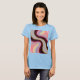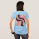 Das ist ein digitales Kunstbild mit einem wirbelnden Muster in den Farben Bordeaux, Rosa und Blassgelb. Das Design erzeugt einen Spiraleffekt mit einem strukturierten Aussehen an den Kanten. Die Farbpalette wechselt von der Bordeaux in der Mitte zu sanften rosa Farbtönen an den äußeren Rändern mit blassgelben Akzenten. Die Textur hat eine graue, künstlerische Qualität. Das Muster ist abstrakt und fließend, die Farben werden in kreisförmiger Bewegung gemischt und gedreht. Der Hintergrund hat eine Textur, die Tiefe und visuelles Interesse verleiht. Die Komposition ist ein digitales Bild mit einer weichen, ätherischen Qualität. Das Bild befindet sich auf der Vorder- und Rückseite des T - Shirt. Der T - Shirt ist ein hellblauer T - Shirt für Frauen.