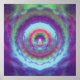 Iridescent Portal ist ein ätherisches kaleidoskopisches psychedelisches mandala design in cyan, magenta und grün.