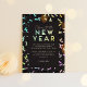 Werfen Sie einen Neujahrstag oder Silvester Party mit dieser modernen Konfetti-Party Einladung. Es zeigt verstreute Konfetti in irisierenden Texturen und Regenbogenfarben. Der Text "Juers to the New Year" ist nicht editierbar, aber die Erholung des Textes ist. Die Rückseite der Karte kann ebenfalls angepasst werden.