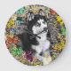 Irie the Siberian Husky in Butterflies II Große Wanduhr