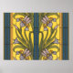 Iris Blume Art Nouveau Glass Blue Gold Poster