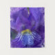 Tapestry Aquarell mit geblümter Garteniris-Blume, große bemalte Blütenblätter vollständig geöffnet und dekorativ. Die hübsche Corolla ist in Violett- und Indigotönen gestrichen, wie eine natürliche Aquarellfarbe und mit kleinen gelben und weißen Mustern oder Sportarten verziert. Der lange und blühende gelbe Stamm schmückt die Mitte der Korolla wie in einem Kunstwerk. Die Farbpalette ist phantastisch und kombiniert verschiedene Violett-, Weiß- und Gelbtöne sowie eine gelbe Haltbarkeit.