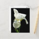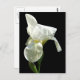 Eine weiße Iris-Blume abgeschieden auf schwarzem Hintergrund. Eine beeindruckende Blumenpostkarte.