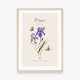 Diese Iris-Geburtsblumen-Wasserfarben-Illustration ist ein besonderes personalisiertes Geburtstagsgeschenk oder ein schönes Geschenk zum Muttertag, Weihnachten oder für ein Neugeborenes.