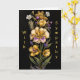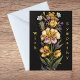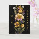 Dieses Kunstwerk ist eine lineare vertikale Anordnung von Blume auf einem schwarzen Hintergrund. Die Blume, eine Iris, wird mit aufwändigen Linien und Kurven detailliert dargestellt. Die Farben des Gemäldes sind gedämpft, mit einem verblassten Wasserfarbeneffekt, was dem Kunstwerk eine weiche und verträumte Qualität verleiht. Die Blätter der Iris sind in Goldstift und -farbe umrissen und fügen eine Touch von Eleganz und Raffinesse hinzu. Das hohe Detailniveau und die Verwendung gedämpfter Farben schaffen mit modernster Technologie ein Gefühl von Feinheit und Raffinesse, während die Goldverkleidung eine Touch Luxus verleiht.