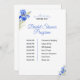 Elegante Brautparty-Programmkarte mit blauen Iris-Blumen.