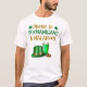 Hier ist ein lustiges Shirt für St Patrick's Day, oder nur für jeden, der stolz auf Irisch ist! Im stilisierten Text oben steht "Prone to Shenanigans & Malarkey" in gold und grün, mit zwei Kleeblättern. Das Bild unter dem Text ist von einem grünen Hut, Goldmünzen und natürlich einem Glas grünen Bieres.