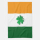 Irische tricolor Flagge mit einem Kleeblatt auf ihm.
