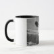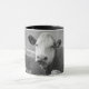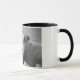 Combo-Tasse in Weiß und Schwarz mit Schwarz-Weiß-Foto (Portrait) einer Kuh, erschossen in Irland, Landkreis Clare.